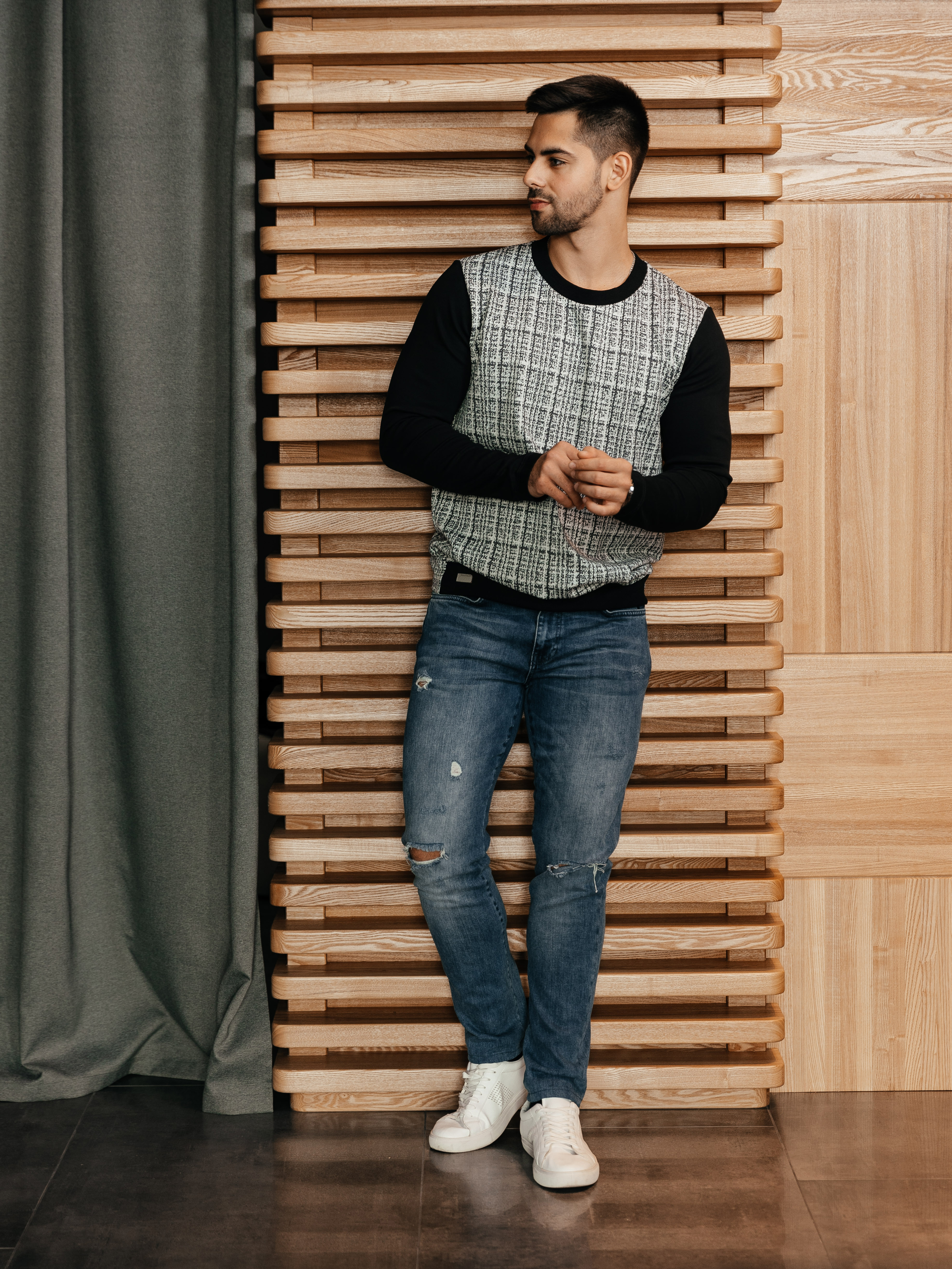 Свитшот "В крапинку с черным рукавом" 58 размер