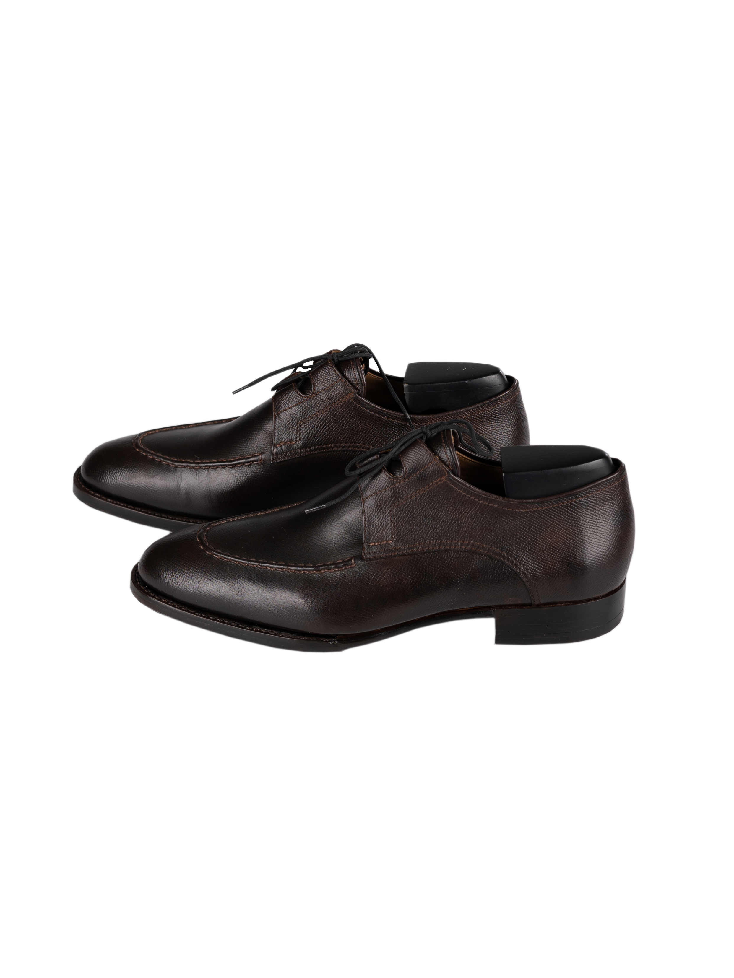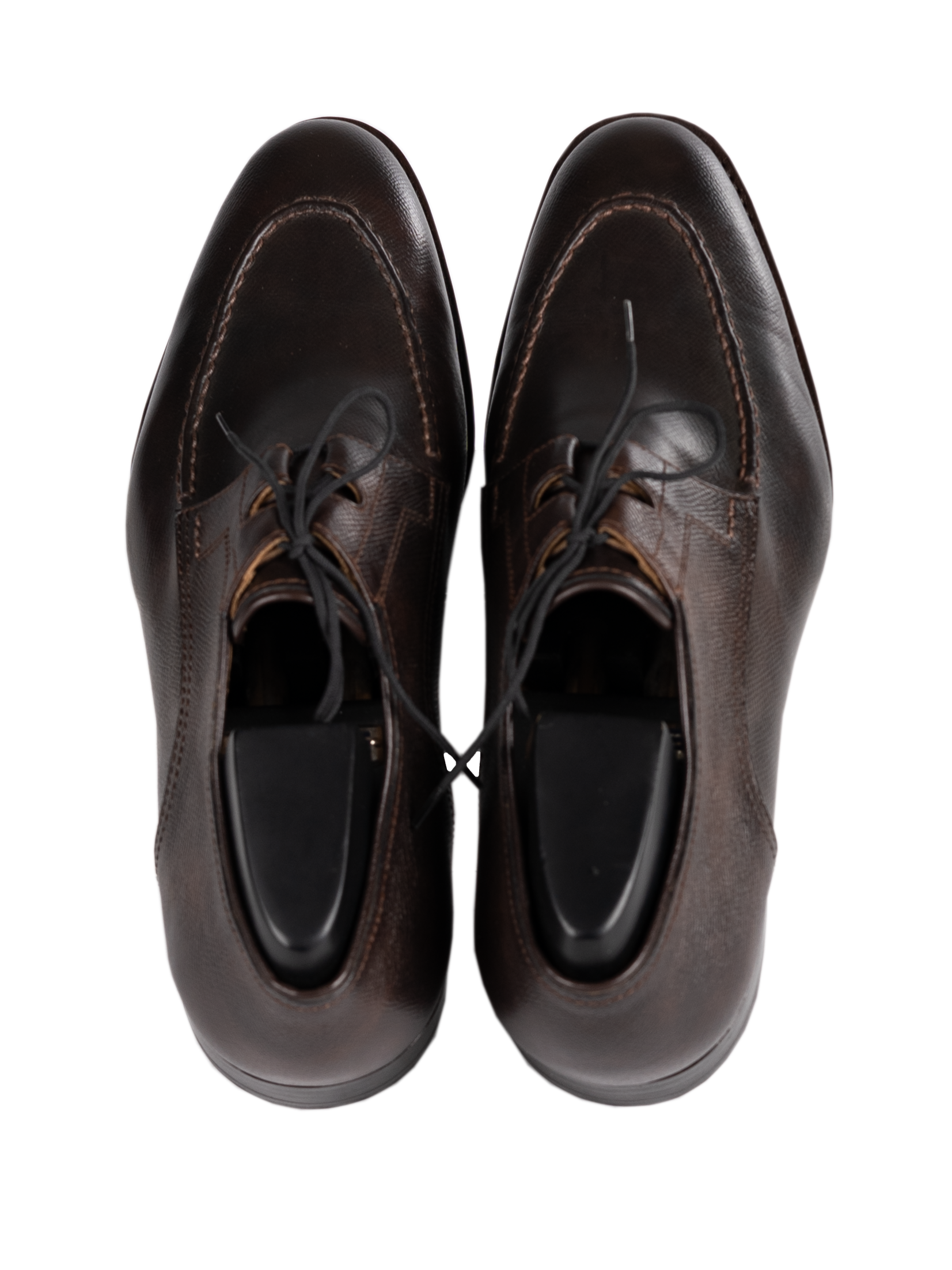 Рекомендации по уходу несложны. Самое важное - использовать формодержатели, т.к. они впитывают влагу которую выделяет стопа при ношении в течении дня. Желательно иметь несколько пар полуботинок, чтобы они отдыхали и принимали первоначальную форму. Не при каких обстоятельствах не мыть полуботинки водой. Убирать грязь щёткой с жёсткой короткой щетиной. Лучший крем который можно посоветовать это saphir pommadier. После нанесения на обувь щеткой с жёстким ворсом подождать 5 - 10 минут, затем располировать щёткой с длинным мягким ворсом. Лучшие такие щётки опять таки saphir с конским волосом длиной 6 см. В модельной обуви не нужно управлять автомобилем. Постоянное нажимание на педали и горячий обдув воздуха в ноги в холодное время года форсированно приводит к износу полуботинок.