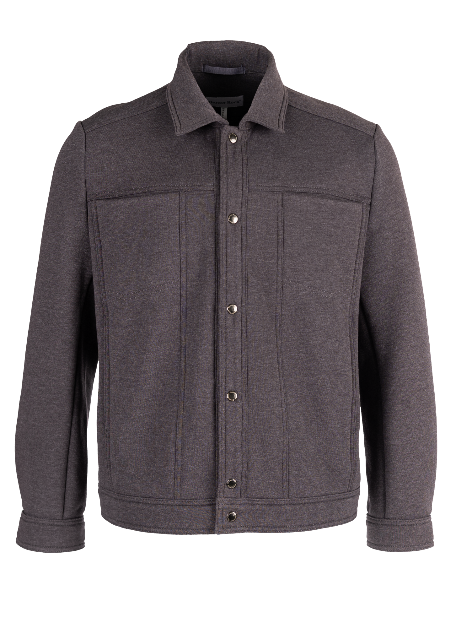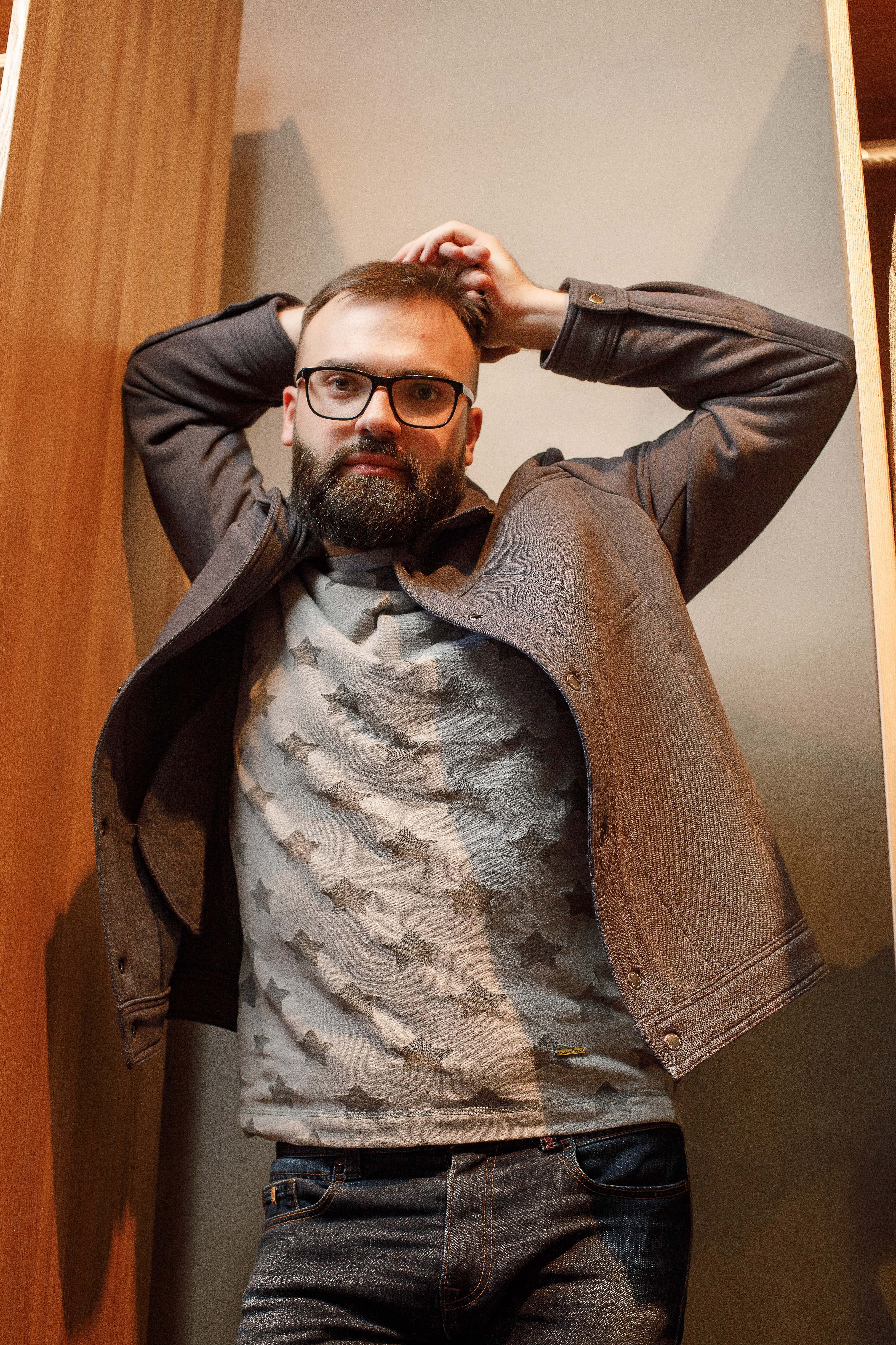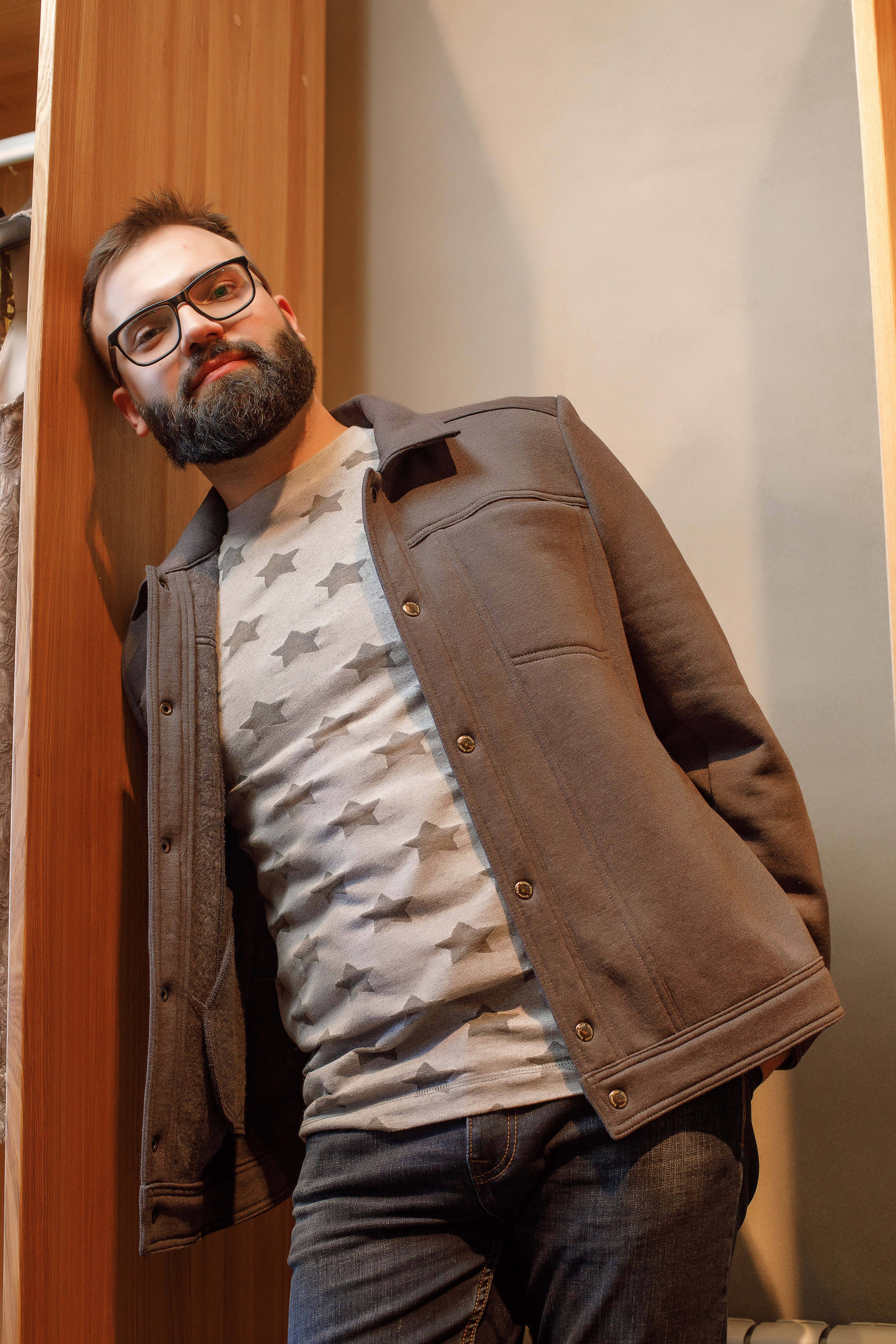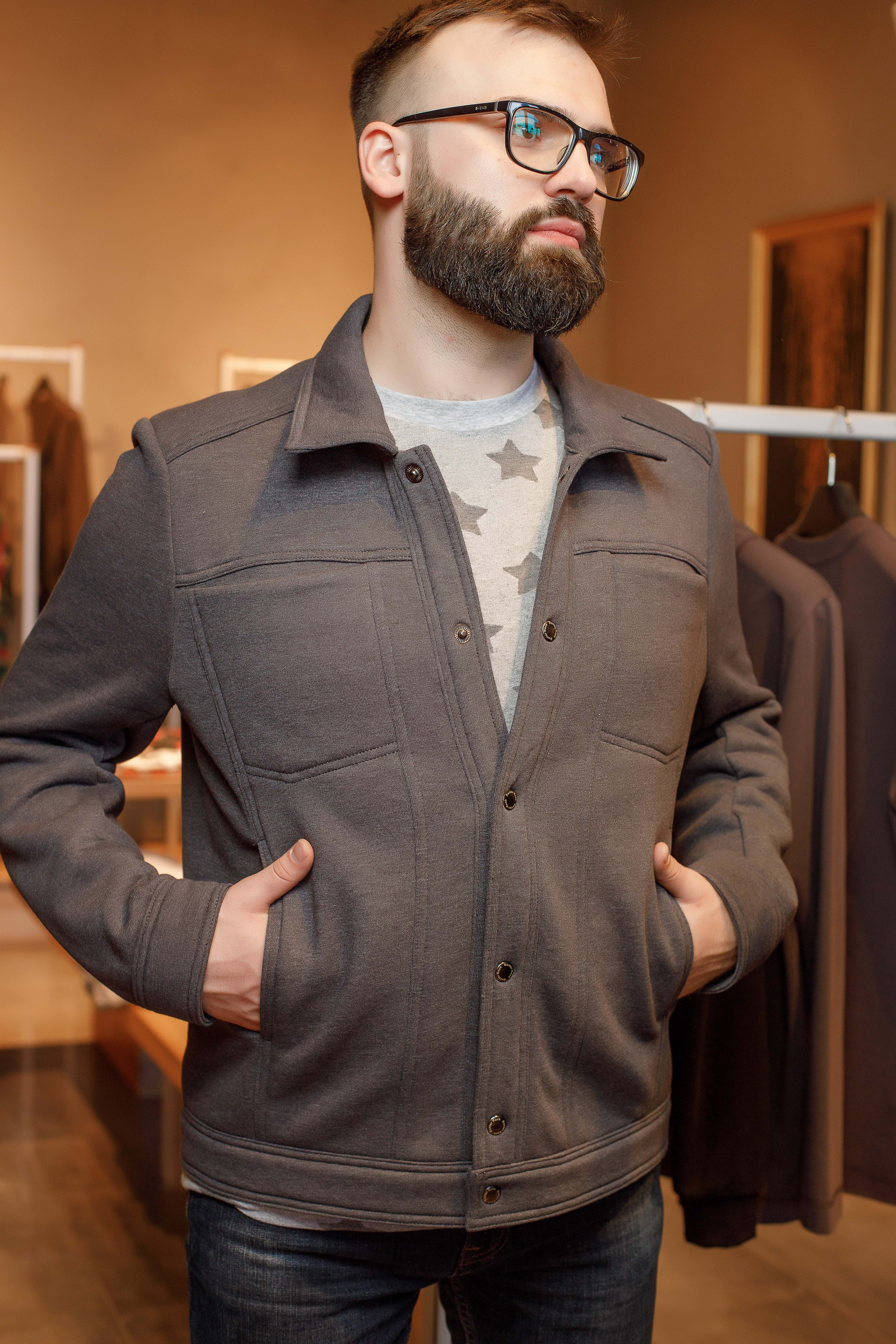 Куртка из футера с начесом с стиле джинсовой куртки. Есть два нагрудных кармана и два боковых. Воротник отложной, рукава на манжете. Застежка на металлические кнопки. Цвет — мокрый асфальт. Подойдет для любителей свободного дресс-кода, для любителей спортивной одежды, активного вида отдыха и для прогулок. Силуэт свободный, мягкий. Подойдет для носки от +12.